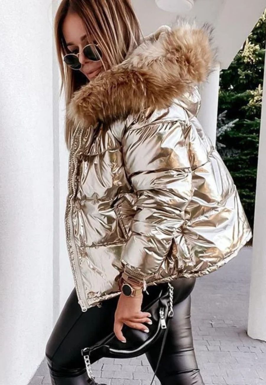 Cette doudoune brillante pour femme, disponible en Noir et Doré, ainsi qu'en 5 tailles, est idéale pour les journées fraîches avec style. Son design léger et chaud en fait l'alliée parfaite pour la mi-saison et l’hiver.