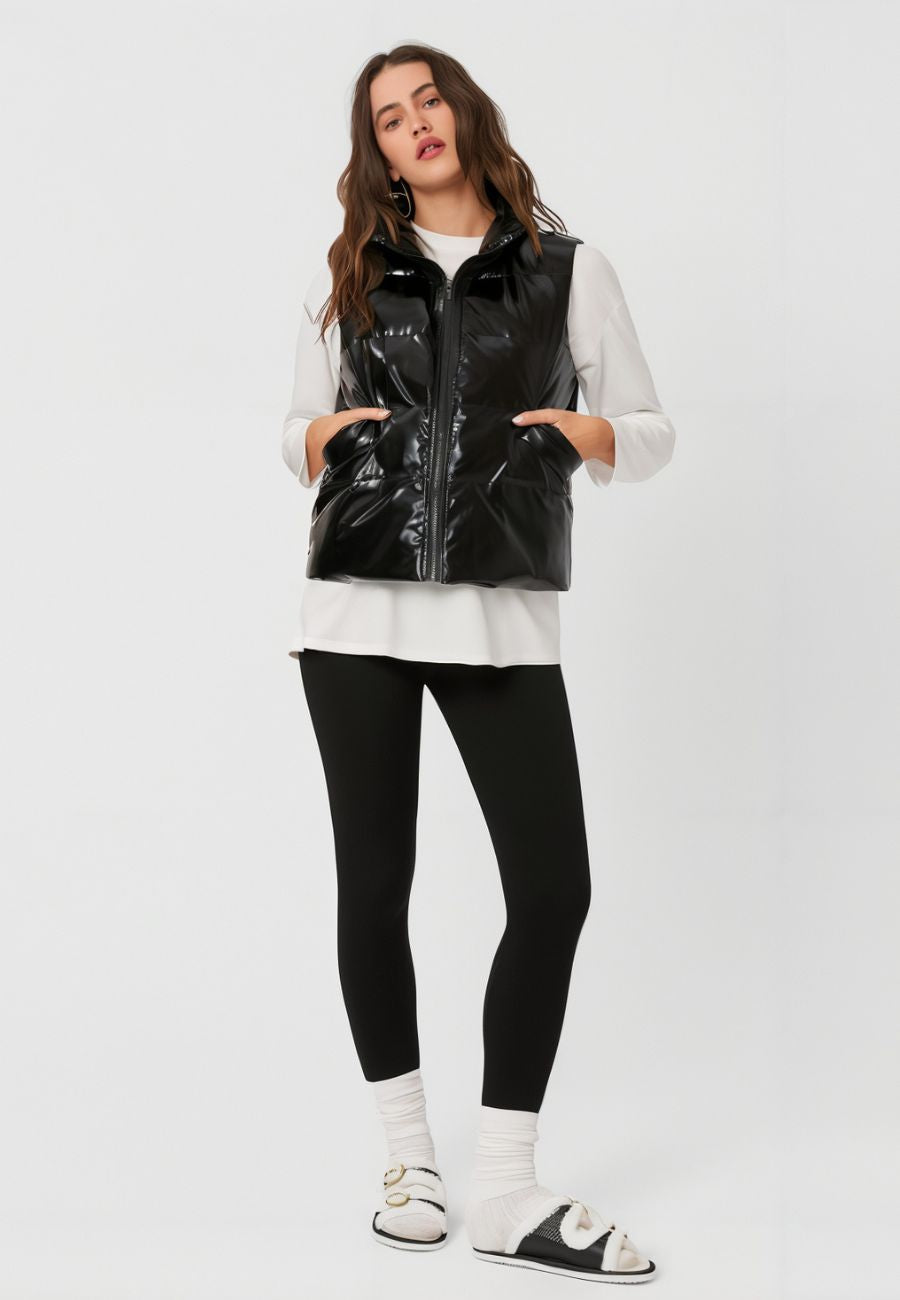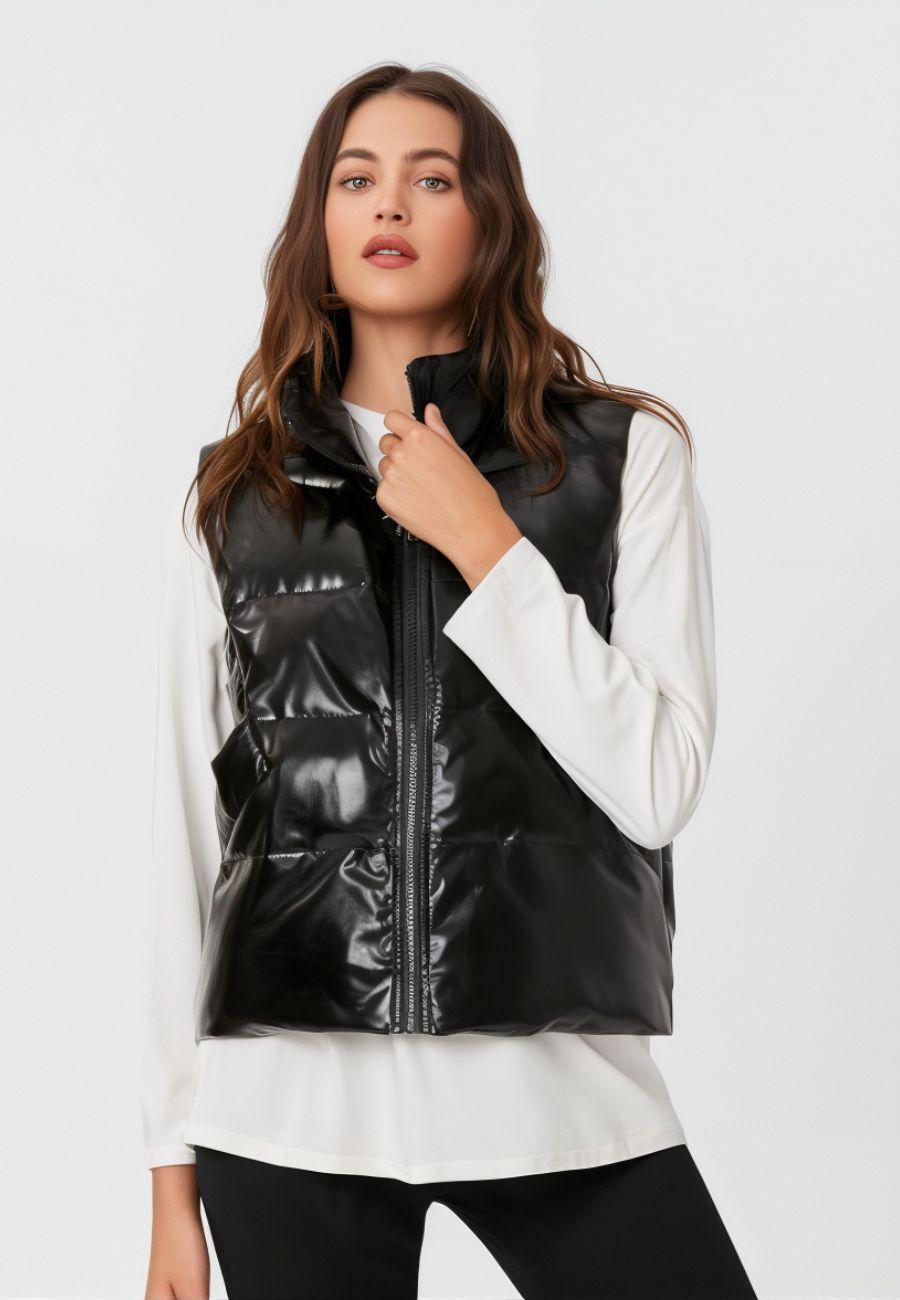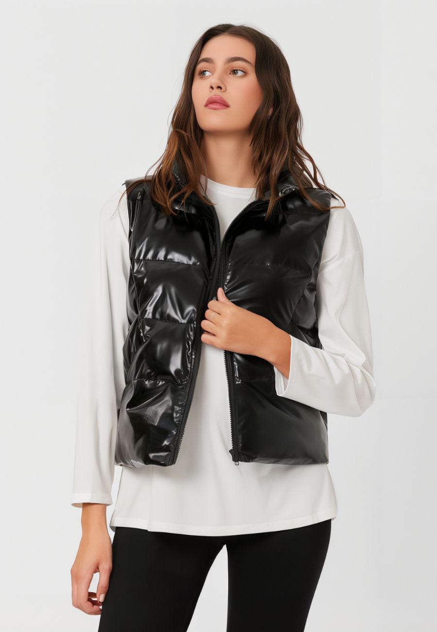 Cette veste sans manches noire est idéale pour les journées d'automne ou de printemps. Son col montant protège du vent. Avec sa fermeture zippée et ses poches pratiques, elle se porte facilement au quotidien, en ville comme en extérieur. Une pièce simple et efficace pour compléter votre garde-robe.